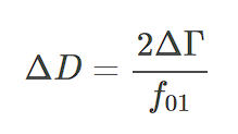 Чтобы оценить жесткость или эластичность пленки, следует обратить внимание на изменение половины полосы пропускания ΔΓ в Гц между чистым датчиком и датчиком с покрытием. Сдвиг полосы пропускания считается небольшим, если он меньше сдвига резонансной частоты Δf.