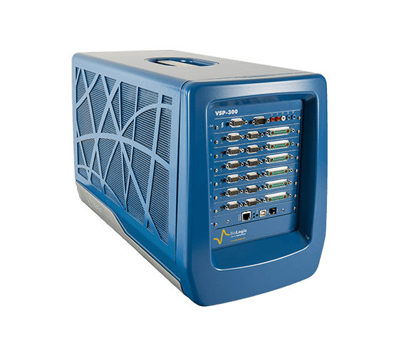 Коммуникационная плата VSP-300 подключается к компьютеру через USB или 100 BaseT Ethernet. Устройство также можно установить как устройство в локальной сети, используя статический IP-адрес. Любой компьютер в сети может подключиться к VSP-300, даже для удаленного доступа. Данные хранятся в большом встроенном буфере (700 000 точек данных) и загружаются непрерывно. В случае потери коммуникационного соединения VSP-300 также может автоматически повторно подключить прибор к сети и восстановить передачу данных на управляющий компьютер.