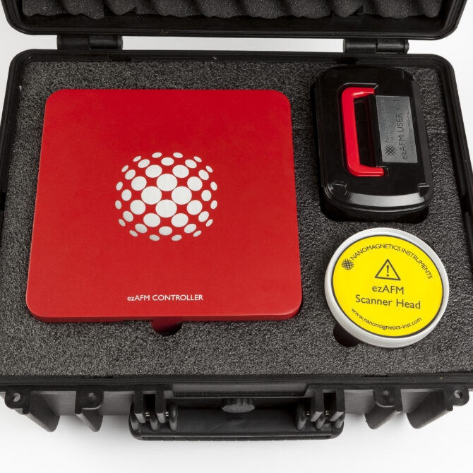 NanoMagnetics Instruments предлагает две разные сканирующие головки для ezAFM для работы в условиях окружающей среды. Сканирующая головка ezAFM120 имеет максимальную площадь сканирования до 120x120x40 мкм и лучше всего подходит для образцов с шероховатой поверхностью и обеспечивает разрешение по Z 0,2 нм. Диапазон Z 40 мкм намного больше, чем у большинства коммерческих систем, позволяющих получать изображения больший ассортимент гофрированных образцов, таких как текстиль, волокна и бумажная масса. С другой стороны, сканирующая головка ezAFM40 имеет максимальную область сканирования 40x40x4 мкм и разрешение 0,02 нм (по оси Z), что позволяет сканировать однослойные поверхности графена. Кроме того, хотя типичный размер образца для ezAFM составляет 10x10x5 мм, его можно легко перенастроить для получения изображений очень больших поверхностей.